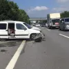 Kartepe ilçesi TEM Otoyolu'nda lastiği patlayarak kontrolden çıkan hafif ticari araç, önce tıra sonra bariyerlere çarptı. Kazada 2 kişi yaralandı