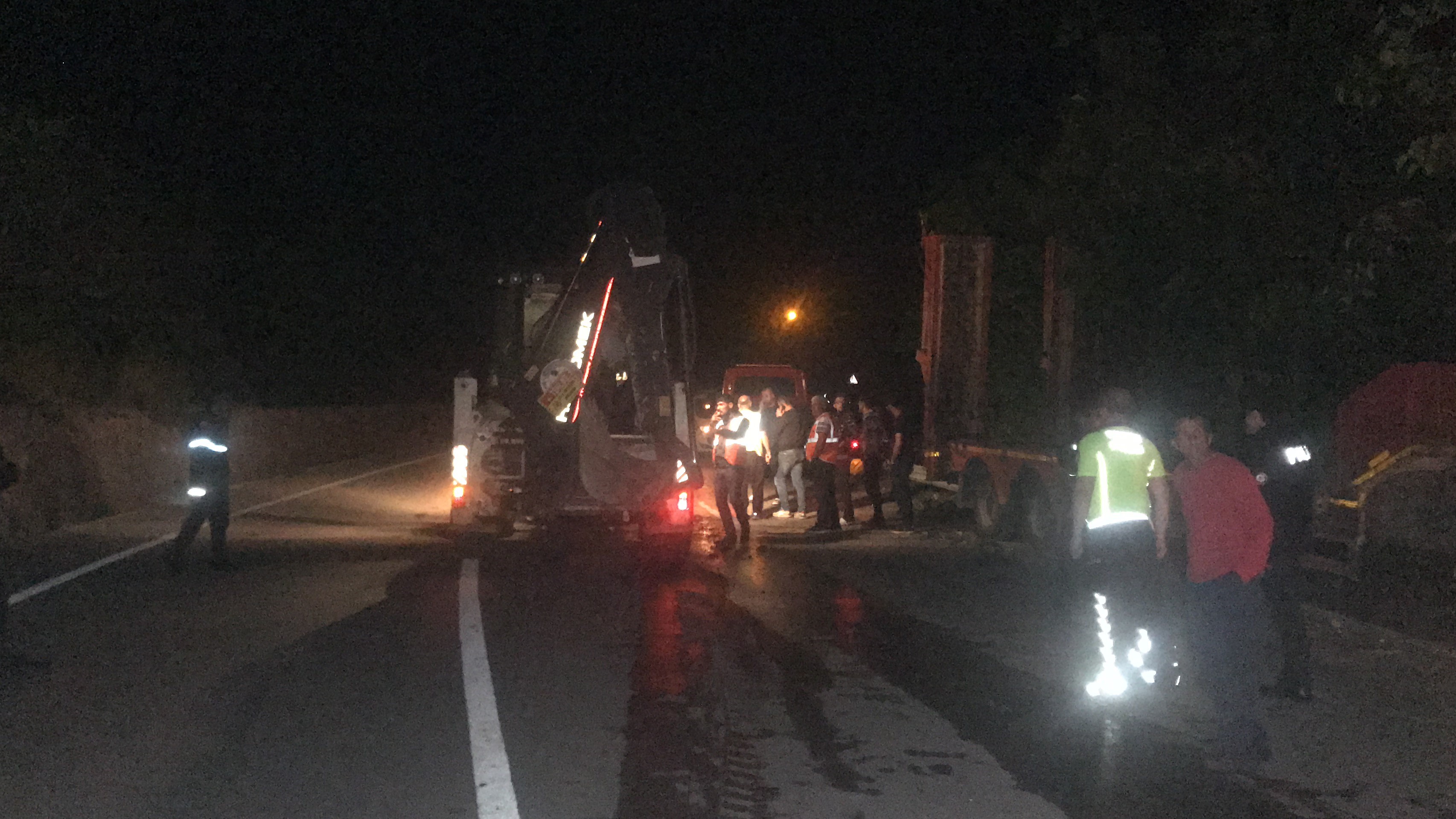 Tır kaza yaptı taşıdığı iş makineleri uçurumdan aşağı uçtu