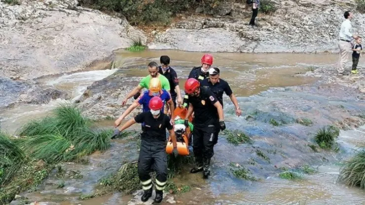 İhbar üzerine olay yerine itfaiye, AFAD, jandarma ve sağlık ekipleri sevk edildi. Kısa sürede olay yerine gelen ekipleri, yaralı şahsı kurtarmak için çalışma başlattı. Kayalık alanda ekipler tarafından yaralı olarak kurtarılan Uğur K., 1.5 km sedye ile taşınarak sağlık ekiplerine teslim edildi.