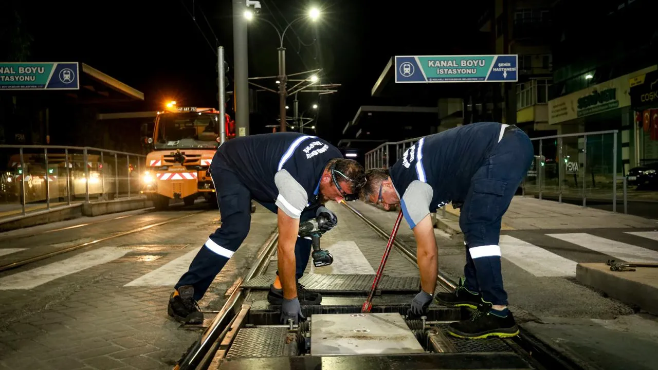 Günlük ortalama 55 bin yolcu taşıyan tramvayın günlük bakımı için gece saatlerinde sahaya inen UlaşımPark ekibi, güvenli ulaşım için rayların bakımını aksatmıyor. Kocaeli’nin demir ağları olan tramvayda gündüz yolcular taşınırken gece saatlerinde ise rayların bakımı yapılıyor. Yolculuğun olmadığı saatlerde bakımı yapılan raylarla birlikte hem hattın güvenliği hem de yolculuk konforu en üst seviyede tutuluyor.