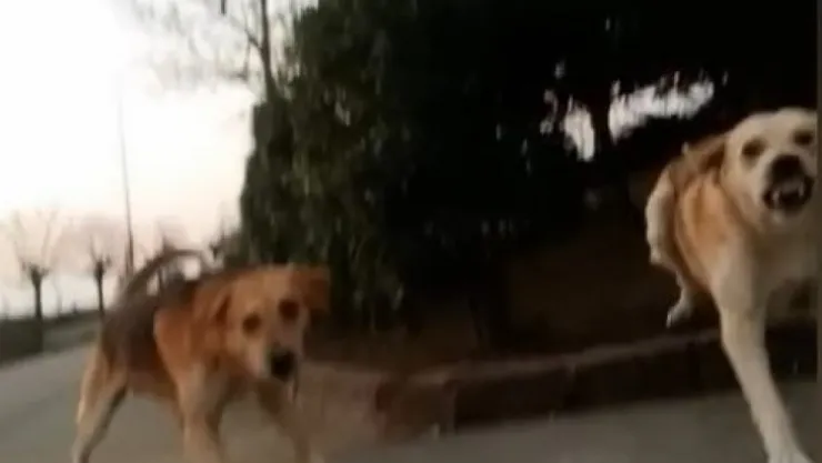 Kocaeli'de tehlike saçan başıboş sokak köpekleri, bu kez üniversite kampüsünde bir kız öğrenciye saldırdı. Çığlık çığlığa kalan öğrenci o anları cep telefonu ile kaydetti.