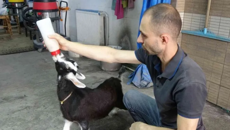 Kocaeli'de oto yıkama işiyle uğraşan bir vatandaş, yavruyken sahiplendiği keçiye iş yerinde bakıyor. Adeta iş yerinin bir parçası olan keçi, müşterilerin de ilgi odağı oldu.