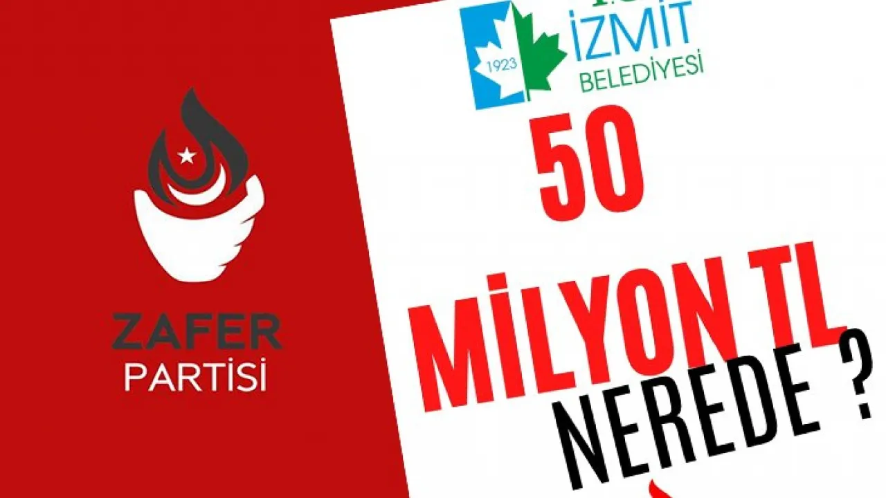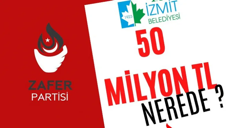 Zafer Partisi Kocaeli İl Başkanı Vedat Çalık ve yönetimi, İzmit Belediye Başkanı Fatma Kaplan Hürriyet hakkında ortaya atılan iddialar sebebiyle '50 milyon nerede?' sloganıyla hazırlattıkları pankart ile bugün Belsa Plaza'ya yürüyeceklerini duyurdu